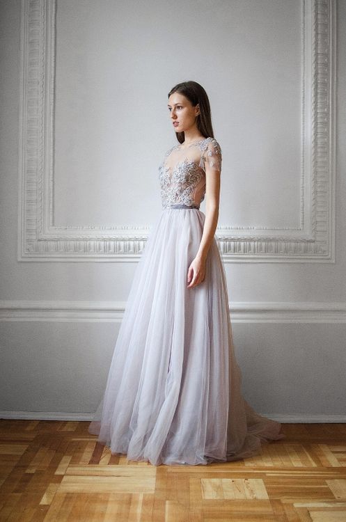 Свадебное платье с короткими рукавами, Свадебное платье в лиловом оттенке, Свадебное платье с вышивкой, Свадебное платье с кружевом, Свадебное платье дизайнерское ручной работы, Свадебное платье с поясом. Размерную сетку уточняйте.
